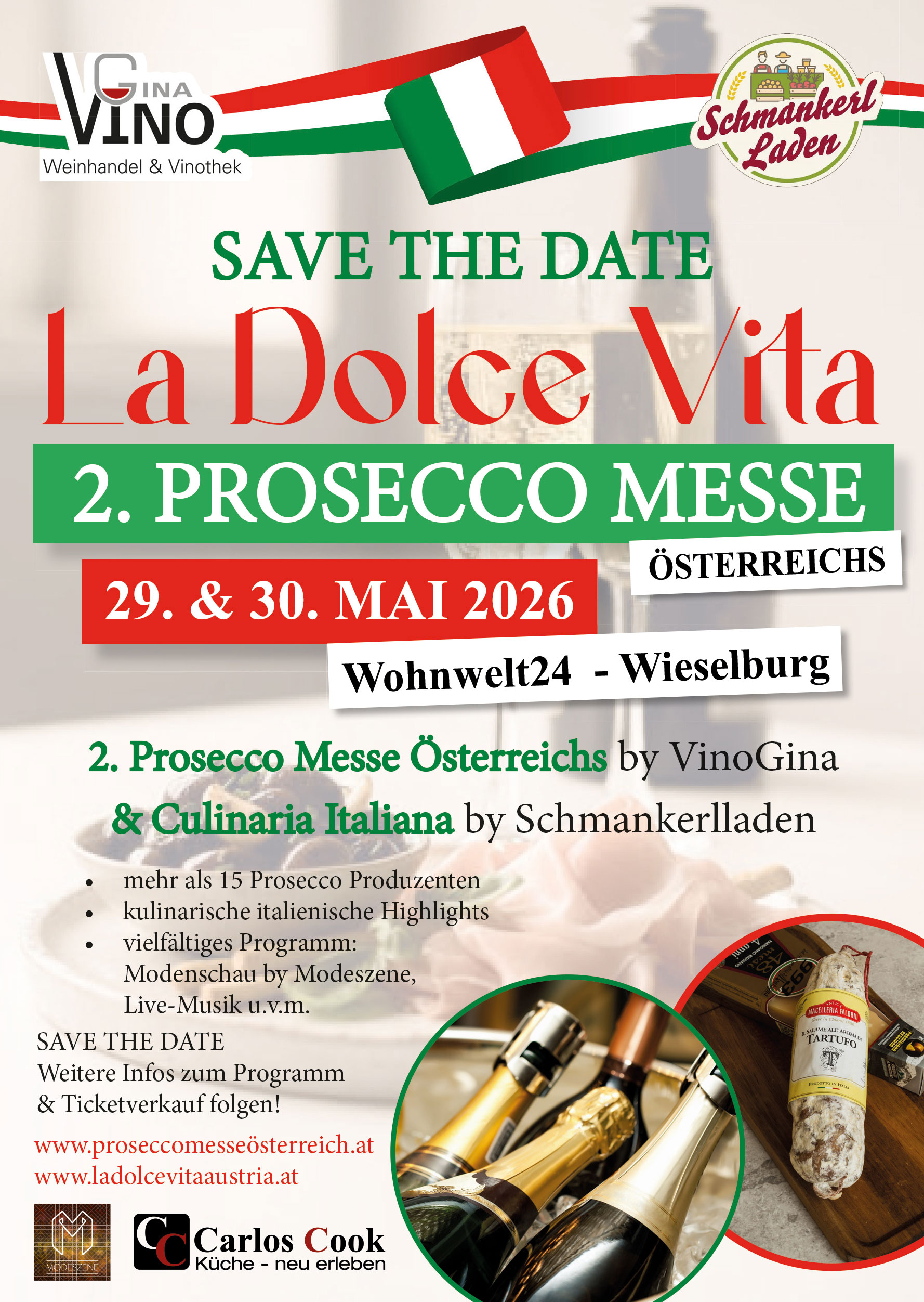 Come promesso saremo presenti anche quest’anno al salone del Prosecco a Wieselburg in Austria il 29 ed il 30 Maggio 2026.